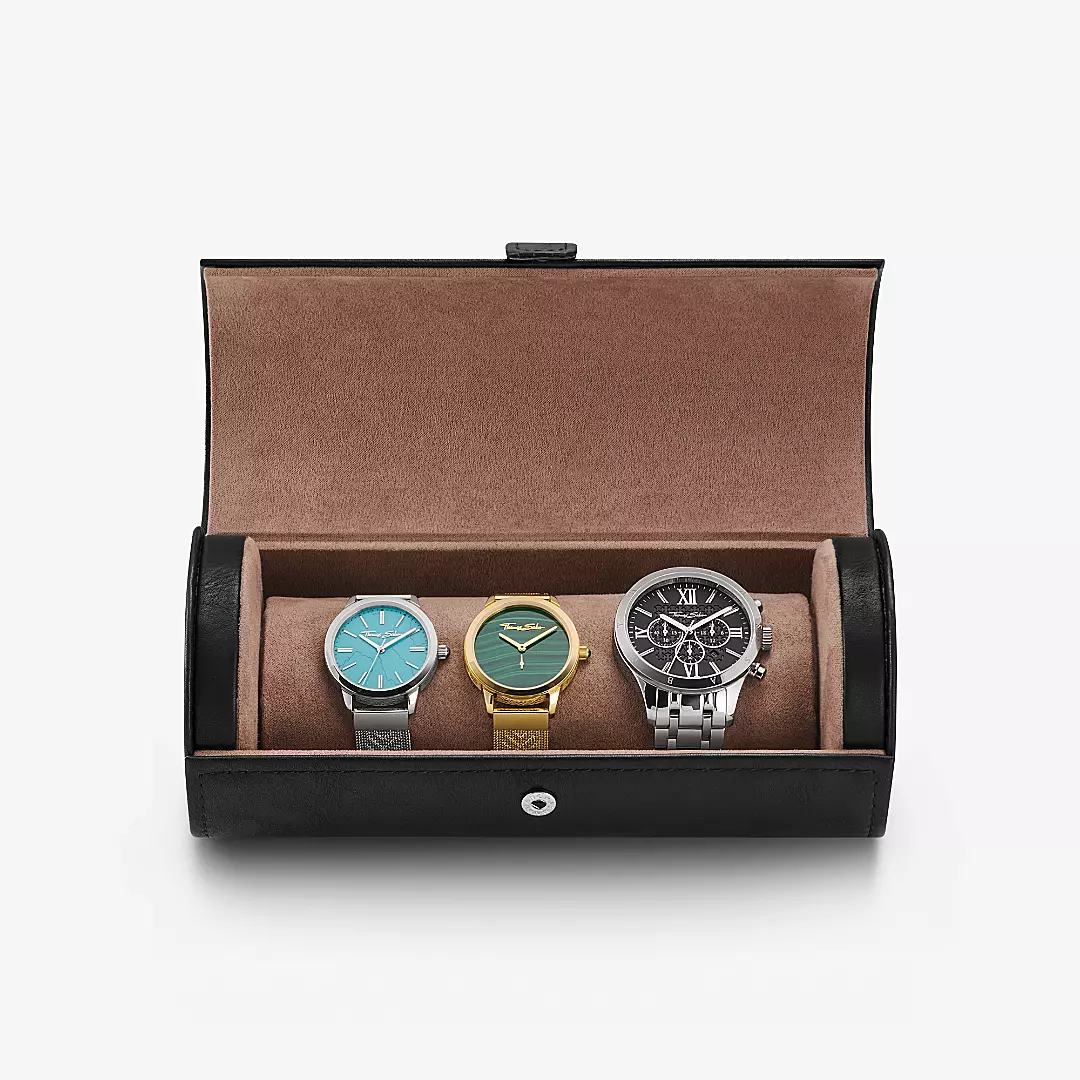 Con nuestro estuche para relojes, podrás guardar de forma segura varios relojes: Nuestro elegante accesorio es ideal para acceder a uno de tus tres relojes favoritos desde cualquier lugar y en cualquier momento.